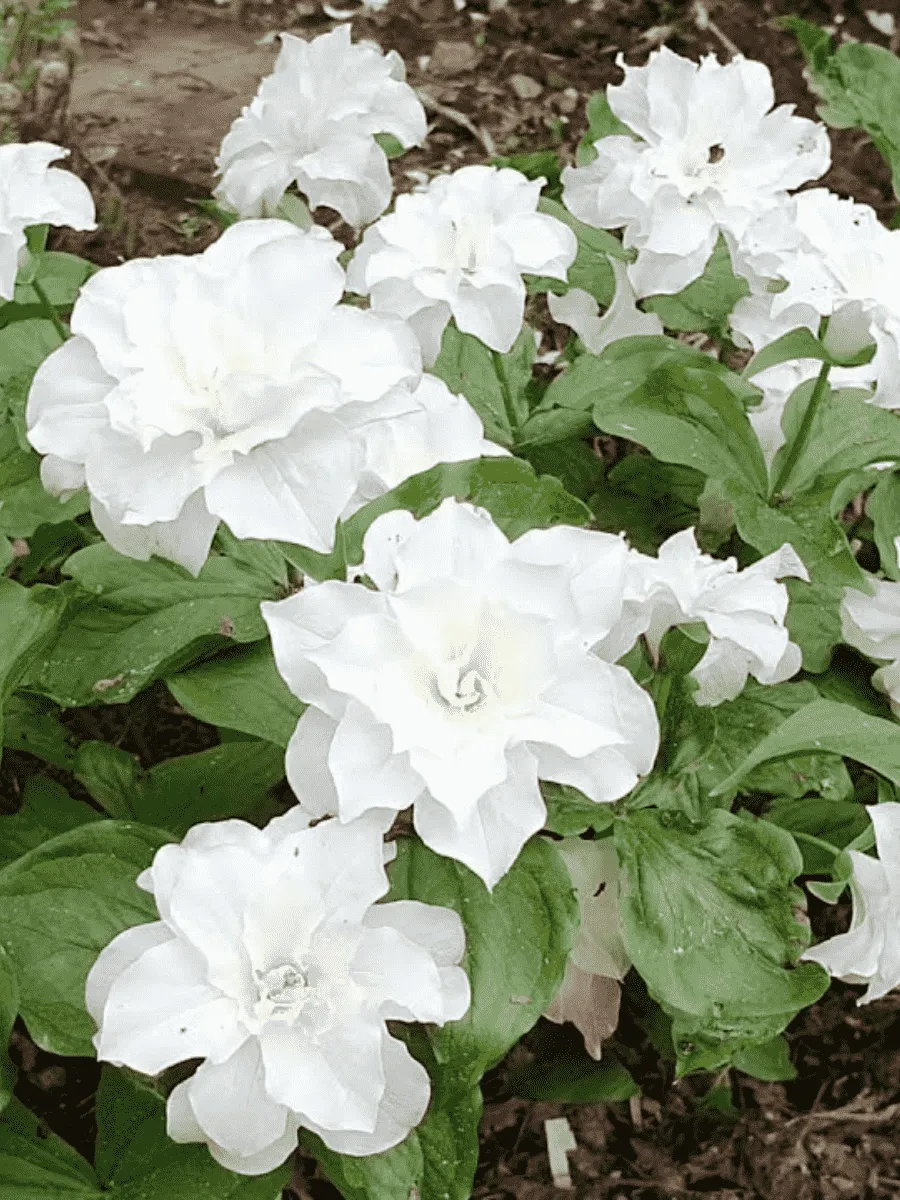 Триллиум крупноцветковый (Trillium grandiflorum), пленяя взор своей изысканной простотой, представляет собой многолетнее травянистое растение семейства Мелантиевые, покорившее сердца садоводов и натуралистов своим благородством и утончённостью форм. Изящная розетка трёх крупных овальных листьев, словно раскрытые ладони, венчается одиночным крупным белоснежным цветком, возвышающимся над листвой на стройной ножке высотой до полуметра. Лепестки цветка широкие, округлые, слегка отогнутые назад, подчёркивая нежность и хрупкость соцветия. По мере цветения лепестки постепенно приобретают нежно-розовый оттенок, добавляя растению особую прелесть и очарование. Предпочитая тенистые уголки лесов Северной Америки, триллиум предпочитает плодородную влажную почву, где медленно разрастаясь, образует живописные куртины, украшая лесные полянки и создавая атмосферу таинственности и гармонии природы.