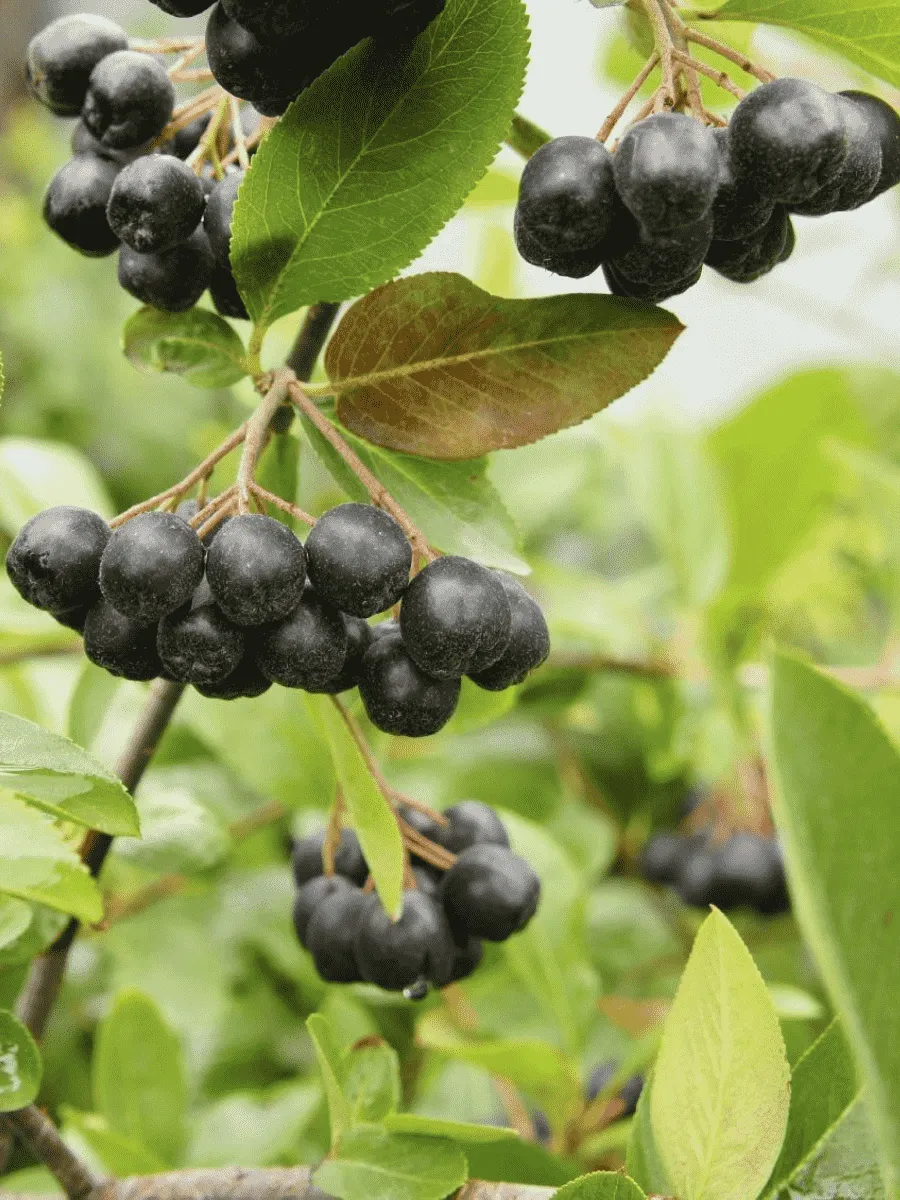 Арония сливолистная сорта 'Nero' представляет собой живописную листопадную кустарниковую породу, достигающую высоты до трёх метров, обладающую густой раскидистой кроной и стройными прямыми побегами тёмно-коричневого оттенка. Листья крупные, овально-продолговатые, слегка блестящие, насыщенно-зелёной окраски летом и приобретающие яркие багряно-красные тона осенью, создавая эффектное декоративное зрелище. Цветки мелкие, белые, собраны в пышные щитковидные соцветия диаметром около пяти сантиметров, распускаются в мае-июне, источают тонкий аромат и привлекают насекомых-опылителей. Растёт быстро, неприхотлива, устойчива к морозам и засухе, предпочитает солнечные места, хорошо переносит стрижку и формирование кроны. Благодаря своей красоте и выносливости широко используется в ландшафтном дизайне парков, садов и частных участков, украшая пространство изысканной простотой и природной элегантностью.