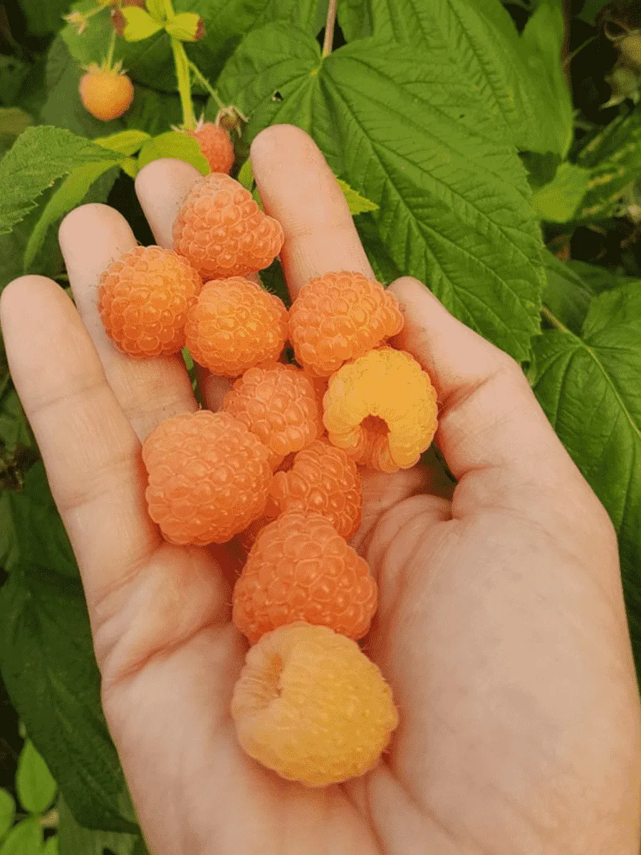 Малина обыкновенная сорта *Jantar* — очаровательное растение с нежной красотой и утончённым очарованием. Её раскидистые побеги образуют живописную поросль высотой до полутора метров, украшенную крупными листьями насыщенно-зелёного цвета, состоящими из пяти овальных листочков с зубчатыми краями и бархатистым пушком снизу. Цветёт малина обильно, покрываясь множеством мелких белоснежных цветков, собранных в рыхлые кисти, источающих тонкий аромат, привлекающий пчёл и шмелей. Растение предпочитает плодородные почвы и солнечные места, легко размножается корневыми отпрысками, быстро осваивая пространство вокруг себя. Этот сорт отличается устойчивостью к болезням и неприхотливостью в уходе, радуя садоводов своей декоративностью и способностью создавать уютные зелёные уголки сада.