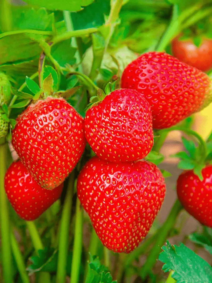 Земляника садовая сорта Фалко представляет собой компактное растение с мощной корневой системой и прямостоячими побегами высотой около 15–20 см, покрытыми крупными тёмно-зелёными листьями насыщенного оттенка, слегка блестящими и рельефными благодаря мелким зубчикам по краям листовых пластин. Цветки белые, крупные, собраны в небольшие соцветия, распускаются обильно и продолжительно, придавая посадкам нарядность и свежесть. Растёт быстро, образует густые куртины, легко размножается усами, формируя плотную зелёную массу, устойчивую к неблагоприятным условиям среды. Листья сохраняют декоративность до поздней осени, украшая участок даже после окончания цветения своей сочностью и благородством оттенков зелени.