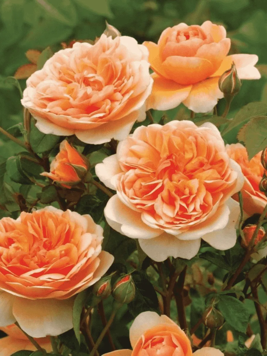 Роза английская кустовая *Port Sunlight* пленяет взор своей утончённой красотой и благородством форм. Куст средней высоты, раскидистый, густо облиственный, обладает мощной корневой системой и крепкими побегами, покрытыми редкой колючестью. Листья тёмно-зелёные, матовые, плотные, слегка морщинистые, состоят из пяти-семи овальных листочков с волнистым краем, придающих растению особую декоративность даже вне периода цветения. Цветки крупные, полумахровые, чашевидные, собраны в небольшие соцветия, раскрываются постепенно, демонстрируя нежную палитру оттенков от кремово-белого до нежно-розового с лёгким золотистым оттенком в центре лепестков. Аромат тонкий, изысканный, напоминает старинные сорта роз с нотами мёда и специй. Период цветения продолжительный, начинается в июне и продолжается до поздней осени, радуя садоводов пышностью и элегантностью каждого бутона. Растение устойчивое к болезням, зимостойкое, прекрасно адаптируется к различным условиям выращивания, предпочитая солнечные места и плодородные почвы.