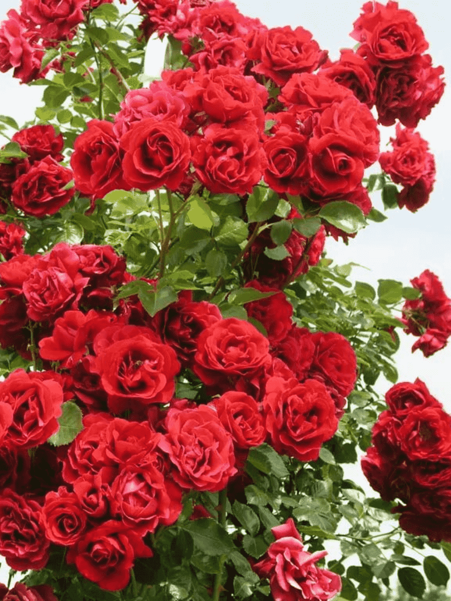 Роза плетистая *Sympathie* пленяет взор роскошной зеленью густых перистых листьев насыщенного тёмно-зелёного оттенка, слегка блестящих и матовых одновременно, словно покрытых тонким слоем бархата. Её гибкие побеги, достигающие высоты до трёх метров, украшены крупными ароматными цветами нежно-розового цвета, переходящего от светлого центра лепестков к глубоким розовым краям. Бутоны раскрываются медленно, постепенно демонстрируя свою красоту, превращаясь в полумахровые цветки диаметром около десяти сантиметров, собранные в небольшие соцветия. Цветение начинается в июне и продолжается вплоть до первых заморозков, наполняя сад нежностью и ароматом. Растёт быстро, легко переносит обрезку и формирует живописную зелёную массу, идеально подходящую для вертикального озеленения беседок, арок и стен зданий.